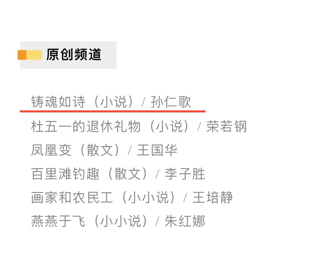 近期,我省作家孫仁歌中篇小說《鑄魂如詩》發表于《芒種》2023年第10期。